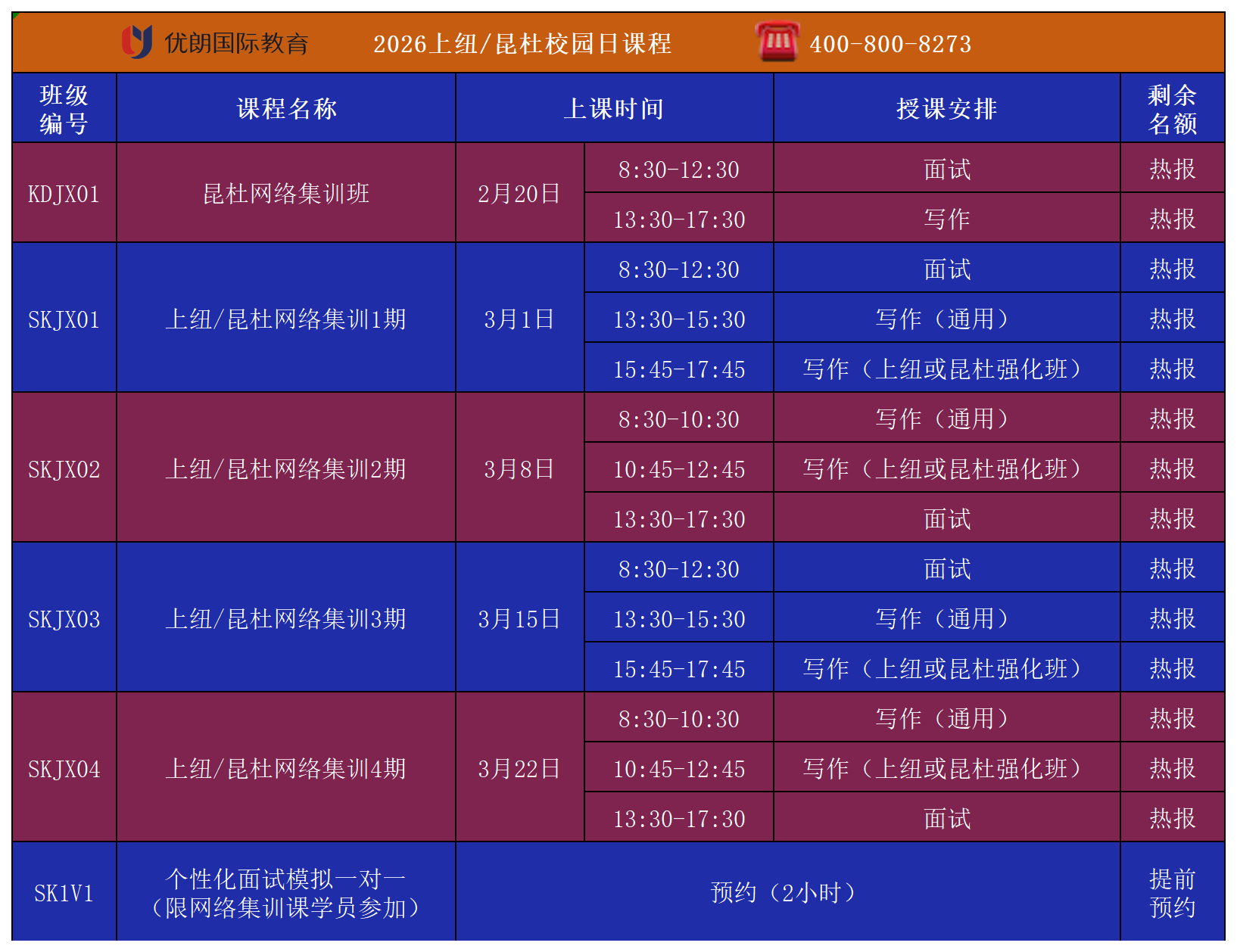 【优朗综合评价面试最新课表】