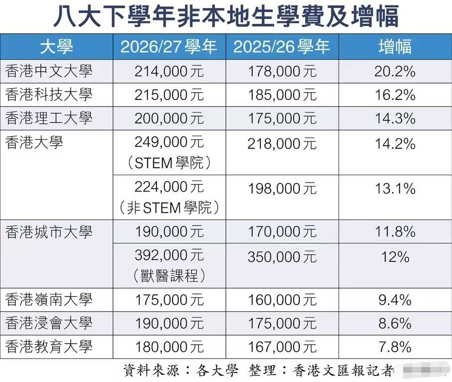 2026届内地生申请港校,学费全线飙升,最低涨幅7.8%,最高直接涨了20%!