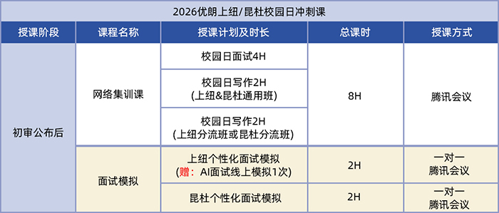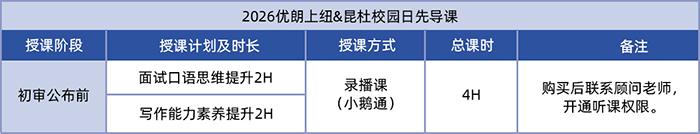 为助力同学们全力冲击上海纽约大学和昆山杜克大学的校园日活动,优朗精心打造了全新的课程体系: