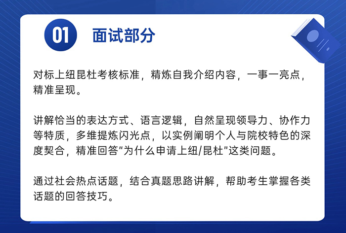 聚焦面试思维,提前洞悉面试底层逻辑,掌握应对策略;同时,解读写作标准,明晰上纽&昆杜的写作逻辑。