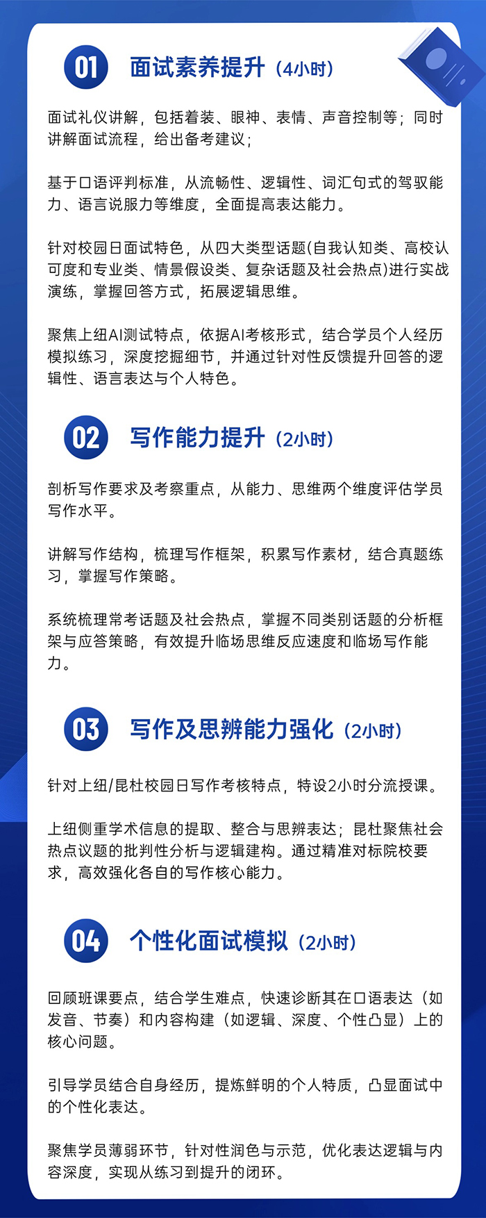 冲刺课:以实战模拟为核心,全方位、高强度的模拟面试与写作演练,助力在校园日脱颖而出。