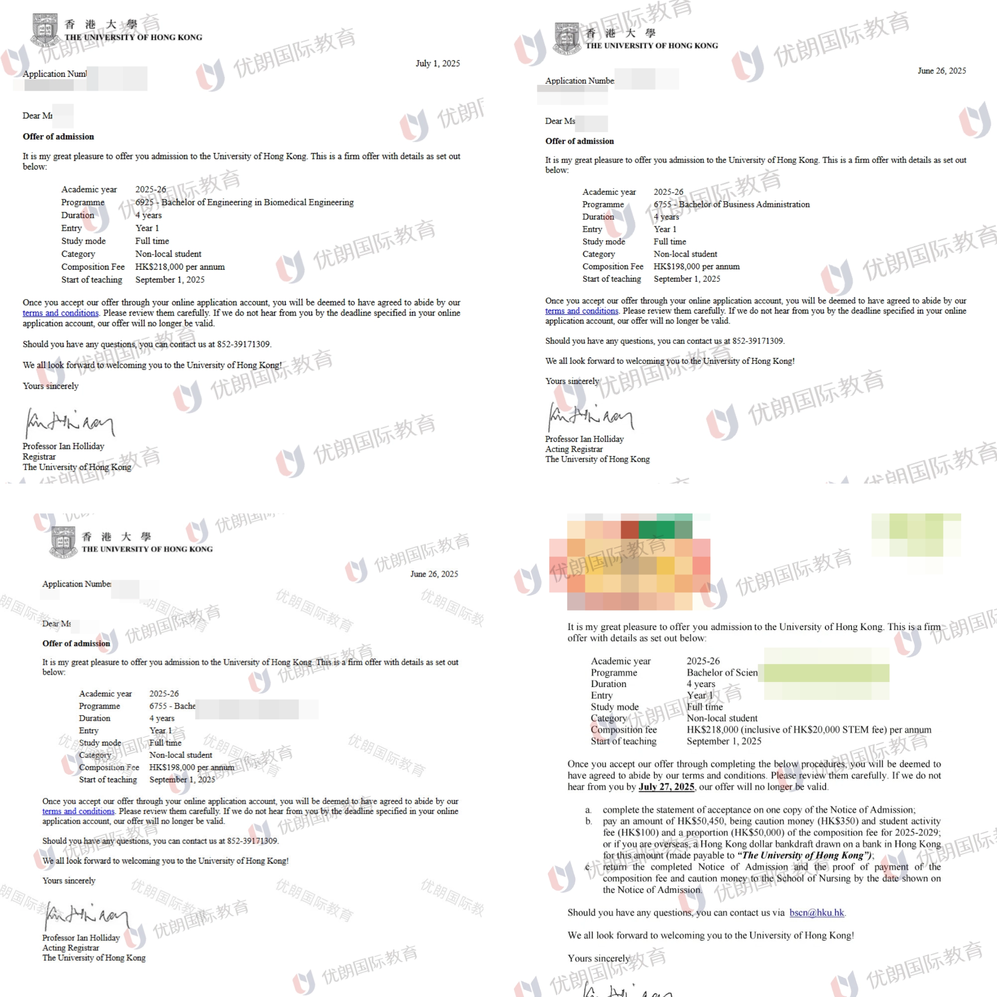 优朗学员2025申请季香港大学有条件录取(Conditional Offer)、加分录取通知官方邮件实拍,真实可查。