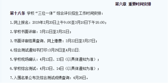 第十八条 学校“三位一体”综合评价招生工作时间安排: