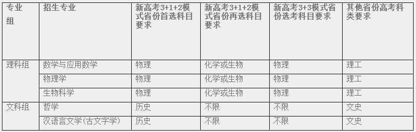 服务国家重大战略需求的基础理科学科以及国家人才紧缺的人文社会科学领域,招生专业、选考科目、科类要求及招生计划见下表: