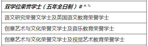 香港教育大学不断拓展与大陆地区的学术交流与合作,并招收优秀的内地学生前来就读,旨在创造更具国际化特色的学术氛围,开拓更独特的多元文化视野,使毕业生能够满怀信心迎接全球化的挑战。教大提供的全日制学士学位课程如下图: