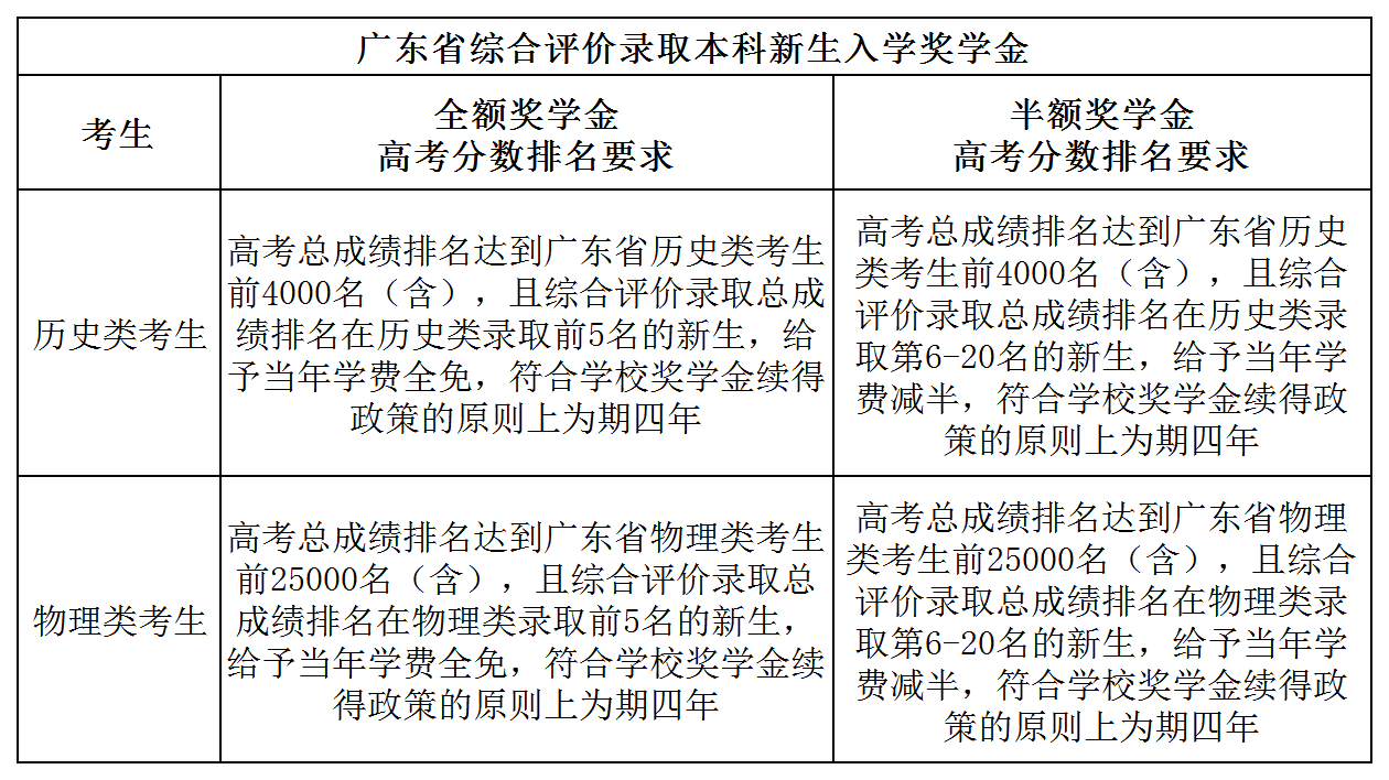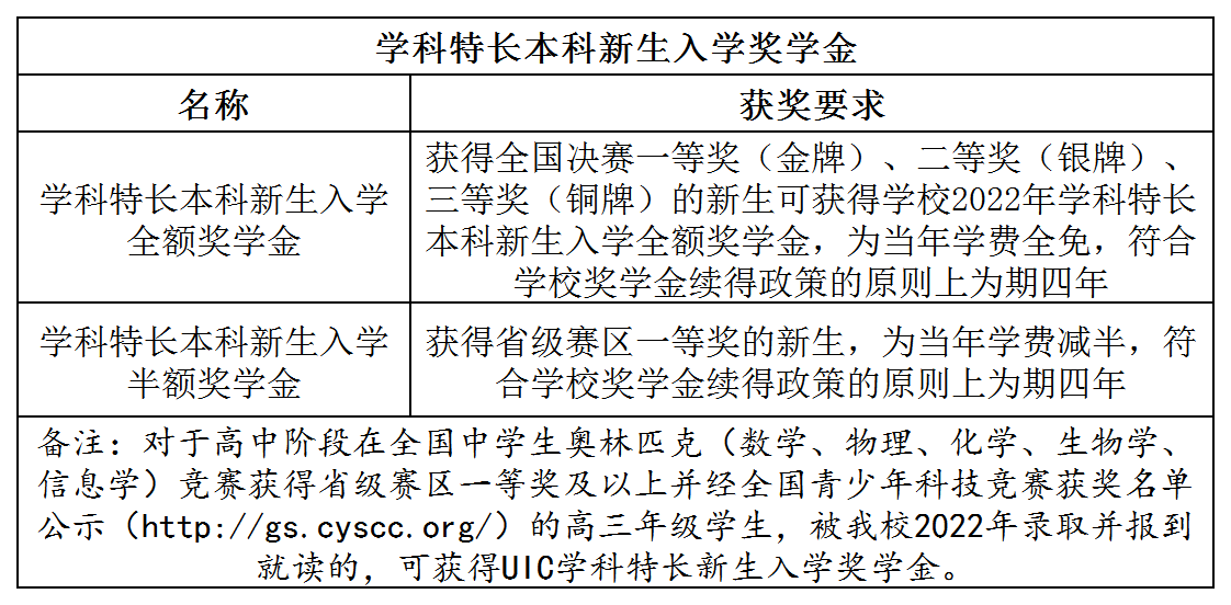 UIC还为广东省考生设置了广东省综合评价录取本科新生入学奖学金(全额、半额),如下图: