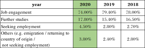 在香港中文大学官方网站中,小编找到了2018-2020届的毕业生就业状况调查数据。以近三年的情况作为支撑,主要看2020届毕业生概况,我们一起看看港中大毕业生都去哪儿了。