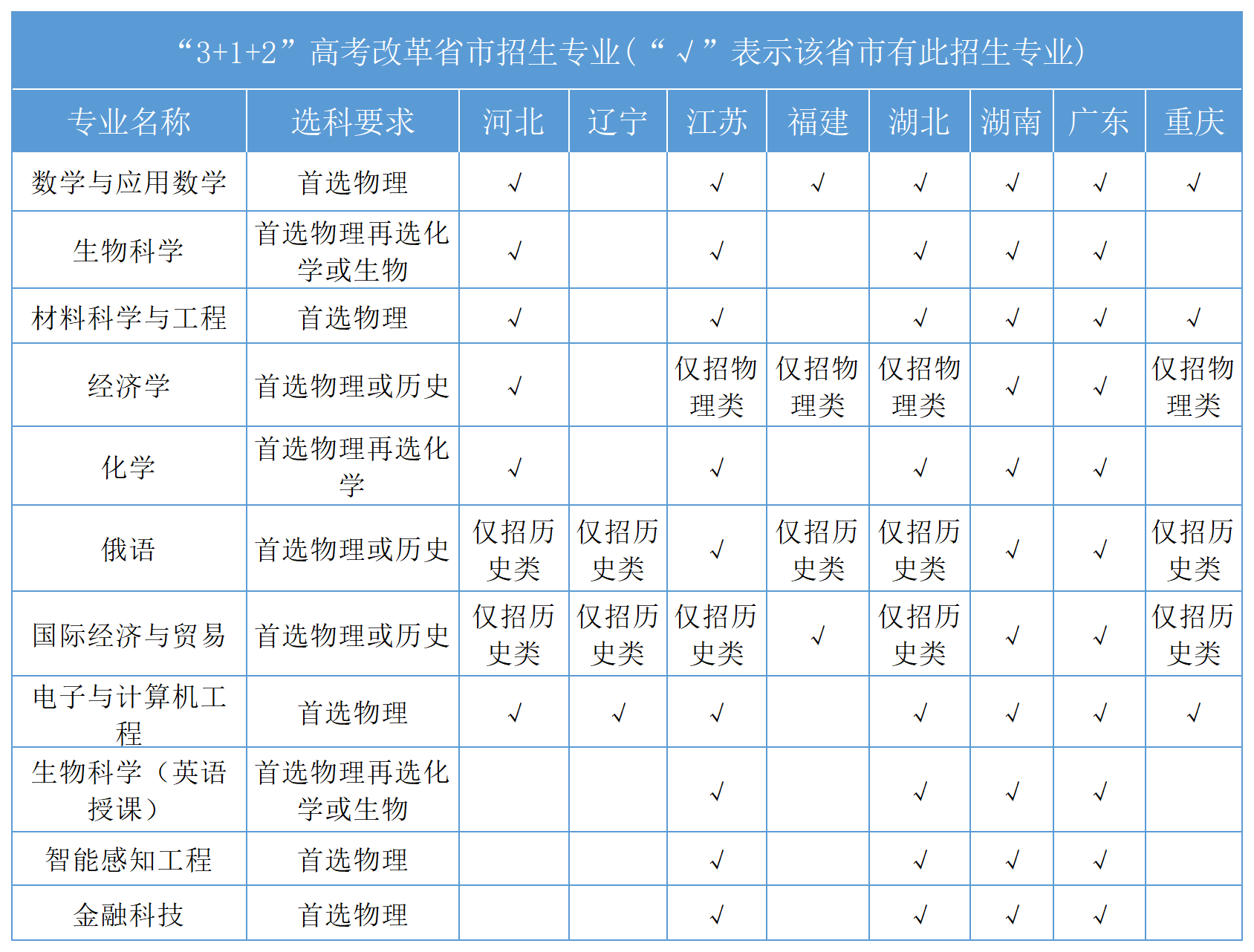 招生省份:本年度综合评价招生实施省份为:北京、天津、河北、山西、内蒙古、辽宁、吉林、黑龙江、上海、江苏、浙江、安徽、福建、江西、山东、河南、湖北、湖南、广东、重庆、四川、陕西、云南、贵州、广西、海南、甘肃、宁夏、青海、新疆、西藏等31个省市自治区。实施新高考省份不分文理,具体选考科目以所在省市考试院发布的招生计划为准。