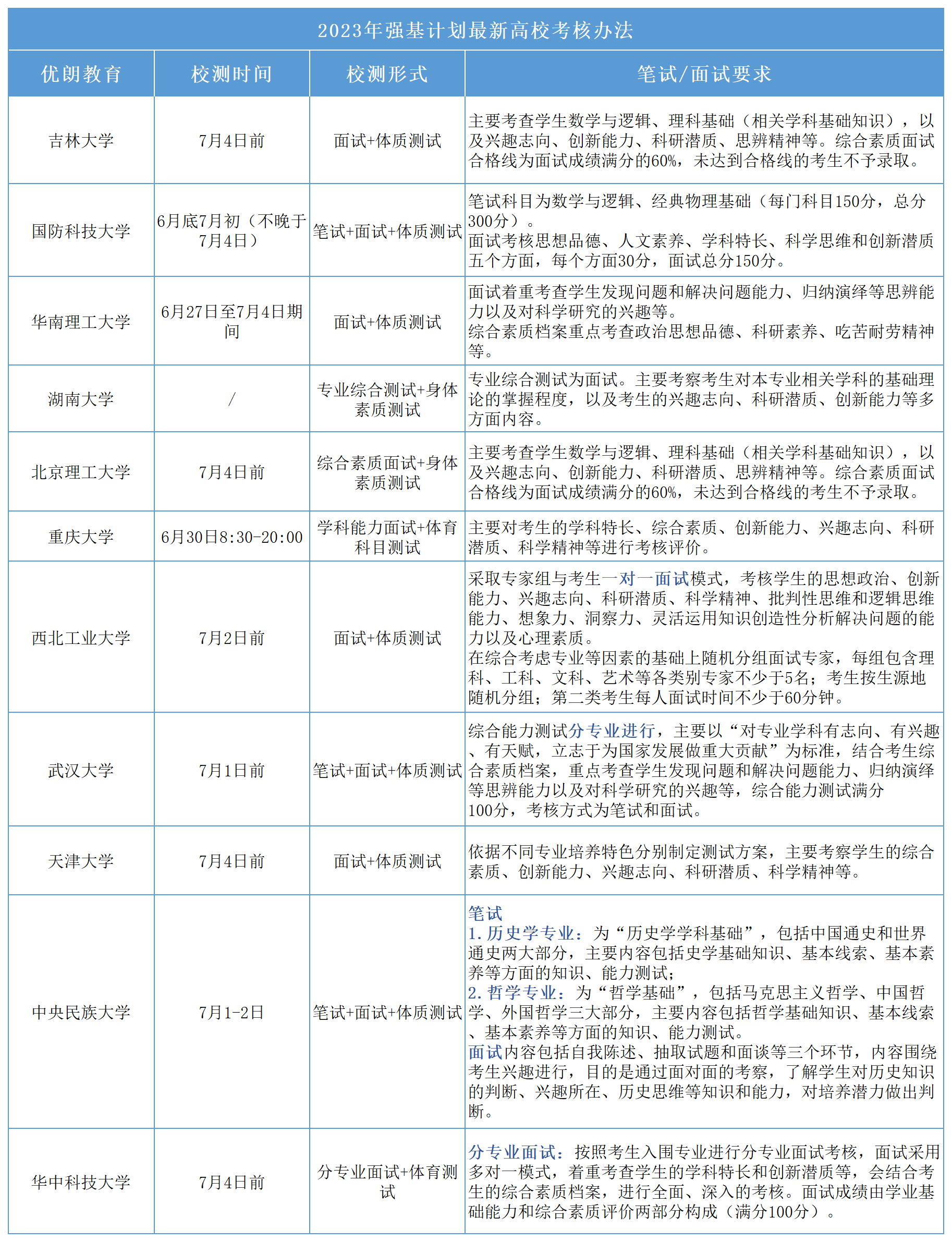 强基计划主要为了培养一批有志向、有兴趣、有天赋的青年学生。所以除了主要的高考成绩之外,最重要的就是校测环节,通过笔试面试,多方面考察考生的综合素质、兴趣志向、科研潜质等。