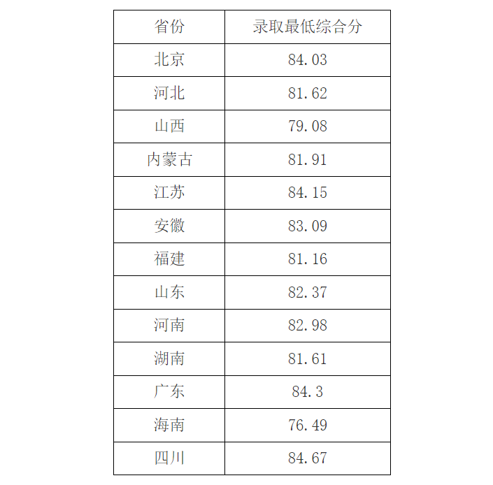 综合成绩:综合成绩=高考成绩(不含任何政策加分,折算成百分制)×85%+我校考核成绩(百分制)×15% (其中笔试成绩占30%,面试成绩占70%)。