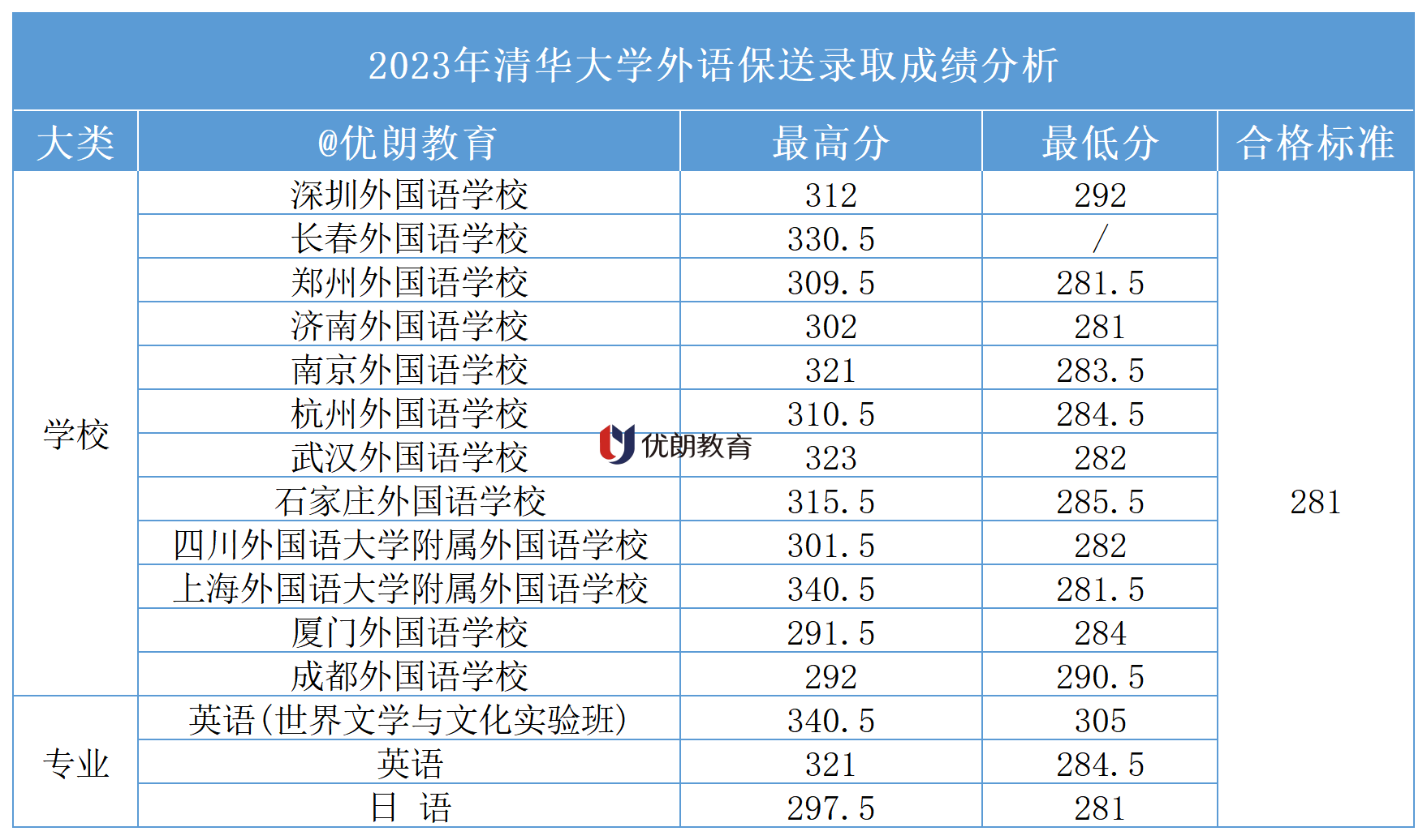 清华大学2023年外语类保送的院校考核合格标准为281分,考核成绩在300分以上的考生有21人,占总录取人数的34.43%。可见优秀的学生不在少数,且平均分数也不低。