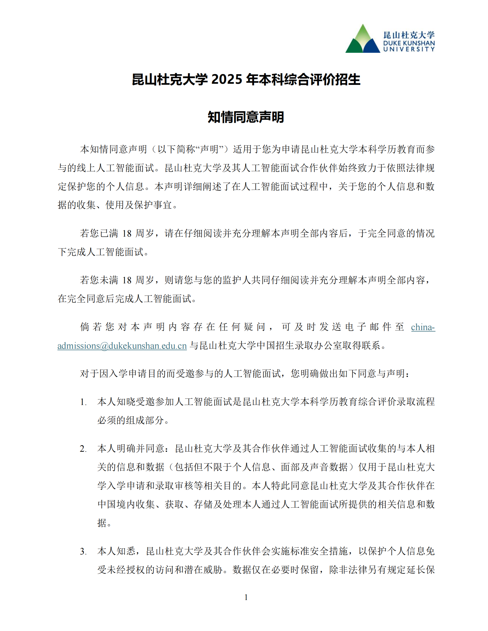 谢谢你提交昆山杜克大学2025年入学申请。作为我校本科综合评价招生流程的重要环节,我们诚挚地邀请你参加我校的人工智能面试。