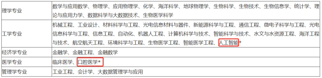 2025年无论是综合评价还是普本招生,物理学、化学、材料科学与工程、生物科学、生物技术、生物医学工程、电子信息工程、计算机科学与技术、数学与应用数学、管理科学、工业设计、外国语言与外国历史12个本科专业对所有招生省市开放。往年,数学与应用数学、管理科学、工业设计、外国语言与外国历史专业仅在部分省(市)招录。