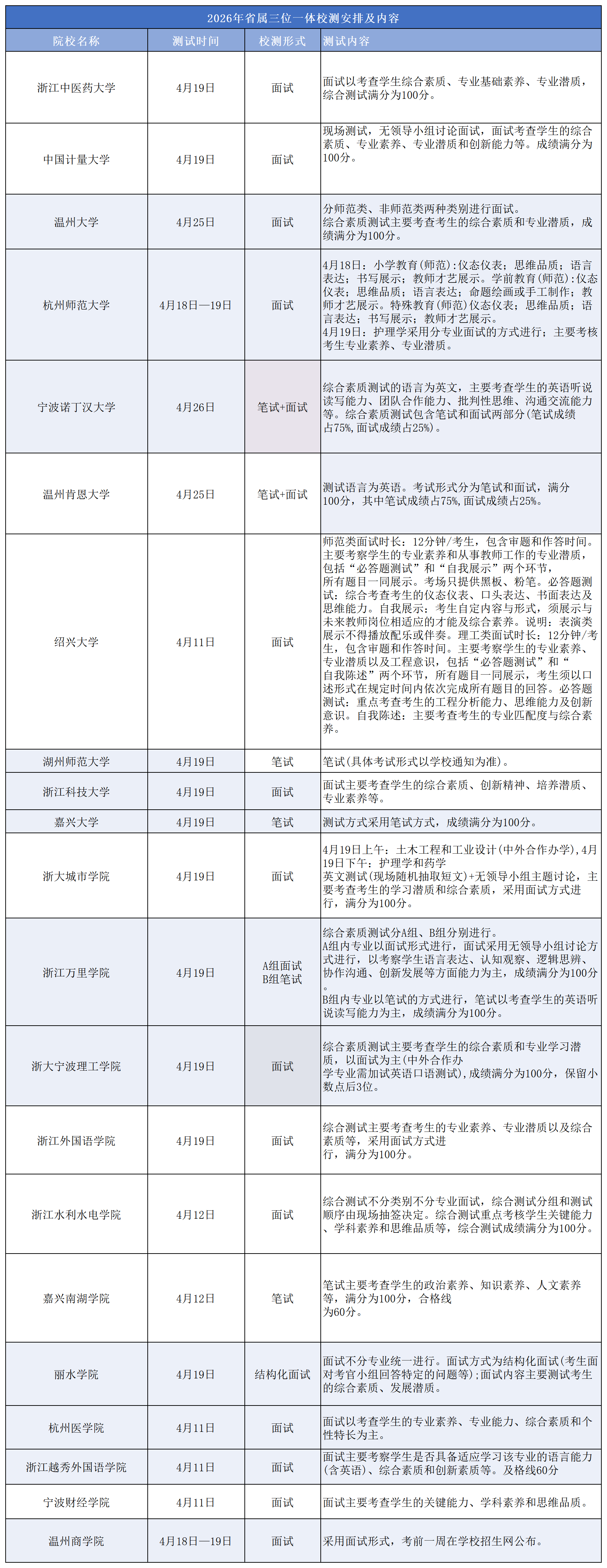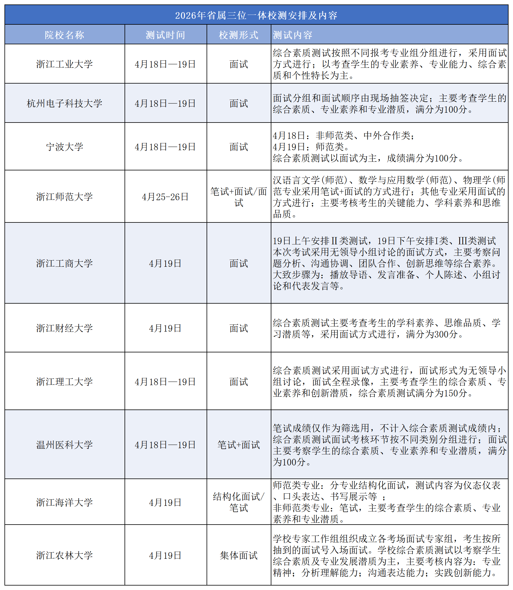 一、2026浙江三一校测核心信息速览