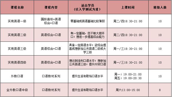 2016年暑期成人英语课程安排