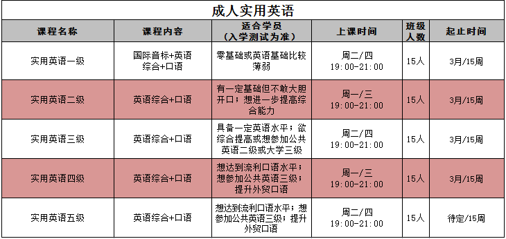 优朗英语湖墅校区2018春季课表