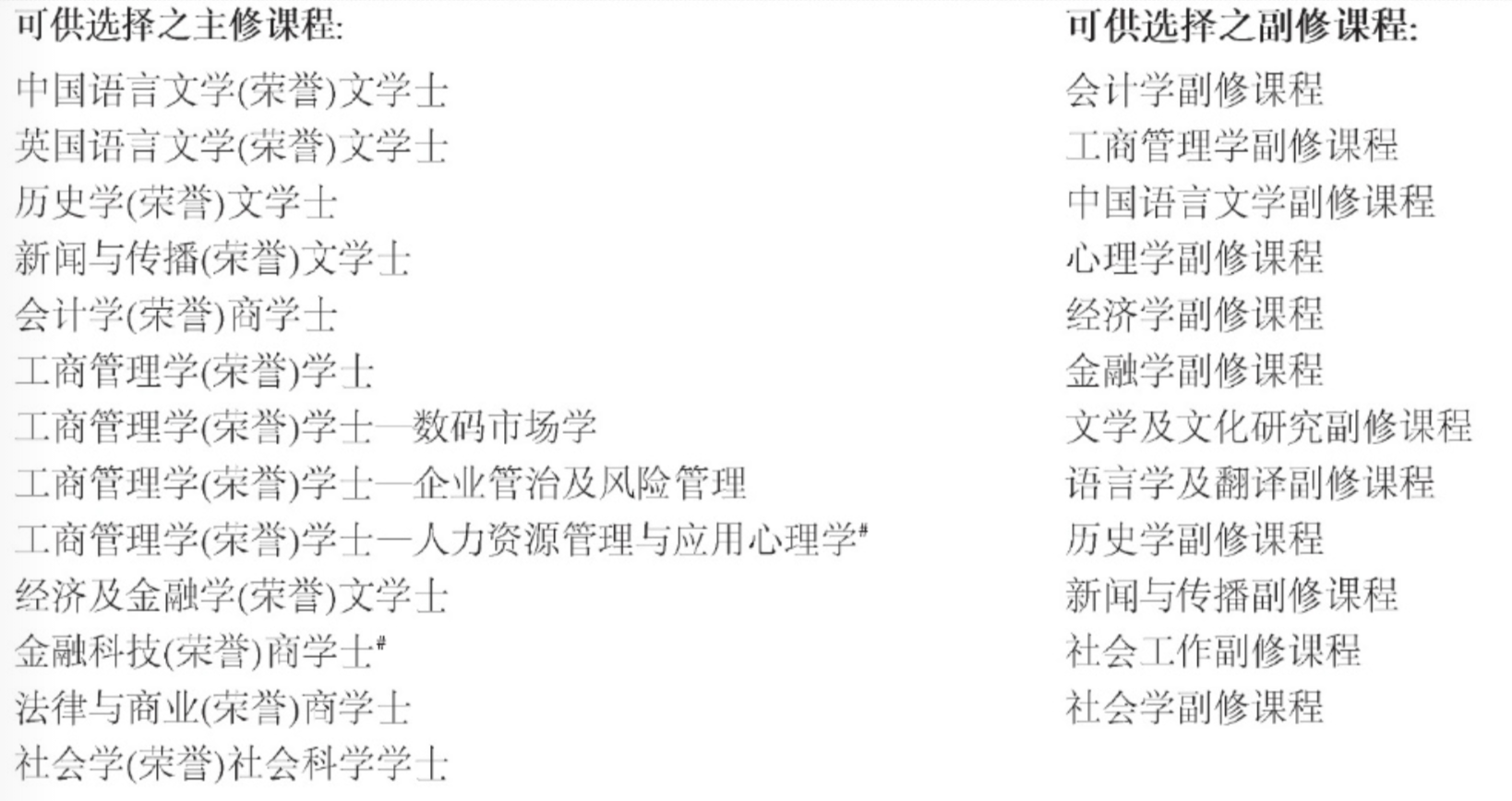 社会学(荣誉)社会科学学士 |