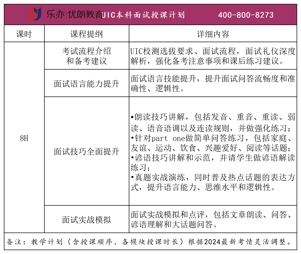针对2024年北师港浸大UIC校测安排,结合优朗往届学员的备考检验,优朗做出以下面试培训安排,帮助考生们顺利通过面试。