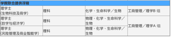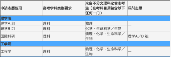 申请人可选报下列18个申请志愿选项其中之一项。当中部分申请志愿选项备有调剂志愿,科大将邀请同学出席申请志愿及调剂志愿的面试。申请志愿及调剂志愿的同学将会同时面试,同学只须要出席一场面试,便有机会获申请志愿及调剂志愿同时考虑。同学请仔细阅读科大的面试邀请电邮,当中详细说明申请志愿及调剂志愿的面试安排。