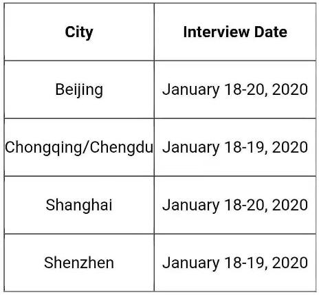 从2019年12月20日开始,香港大学已经开始陆续短信邮件及在「网上申请系统」中发布满足报考要求的考生的面试邀请,时至今日,考生们已基本选定自己合适的面试时间。2020年香港大学卓越计划面试时间及地点安排见下图: