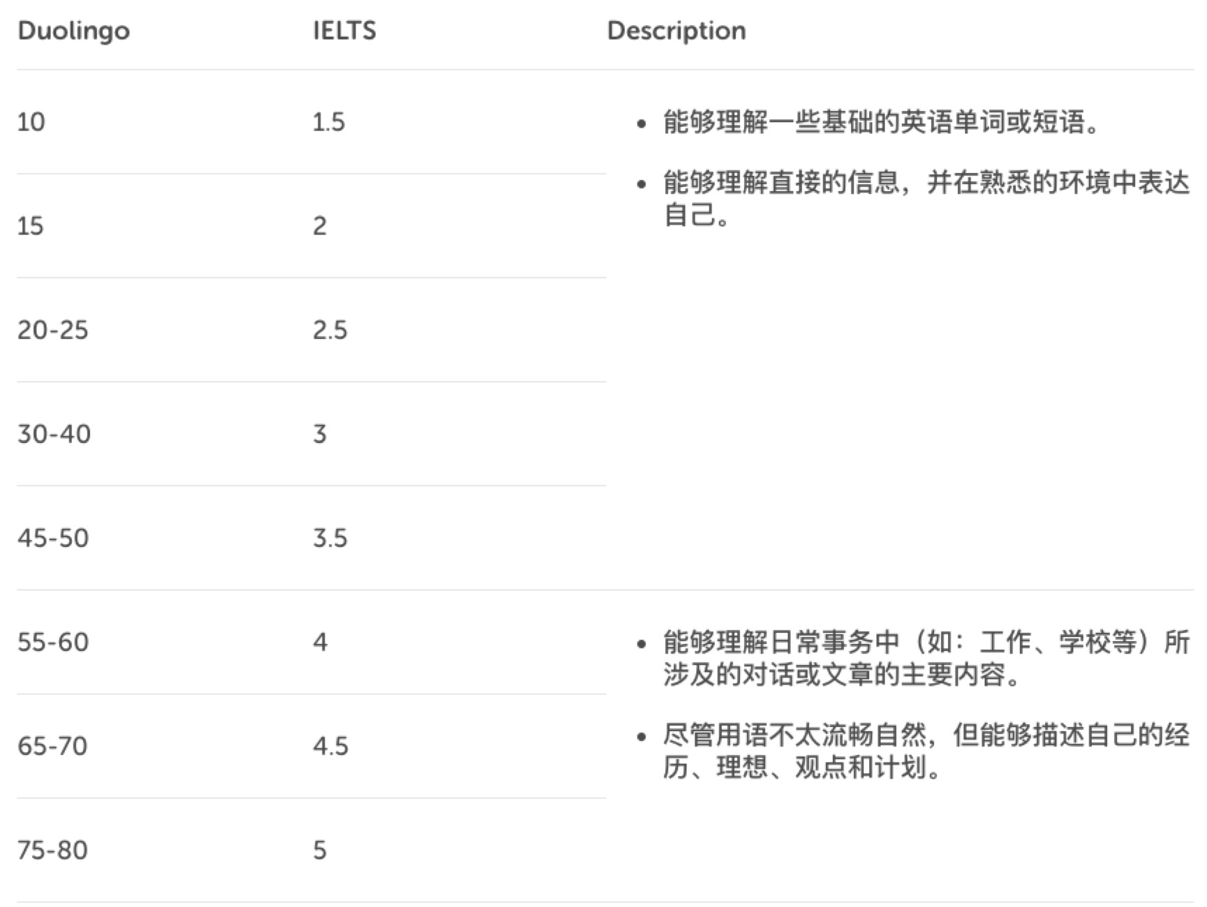 Duolingo测试和雅思分数对比