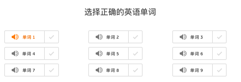 需要考生依次点击下图中的小喇叭图标,判断读出来的单词是否是正确的英文单词,考察词汇的正确发音辨认 。答题原则仍然是听得懂的快速勾选,听不懂的按照自己的直觉进行选择。