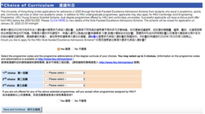 *同学最多可以报考三个志愿, 并选择是否接受调剂。如不清楚 选读科目之简称,请于课程资料 ( http://www.aal.hku.hk/admiss ions/mainland/admissions- information?page=sc/programm e-information )查看。