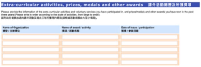 *请以英文简写填写获奖和大学加分情况,每一栏不能超过40个字符