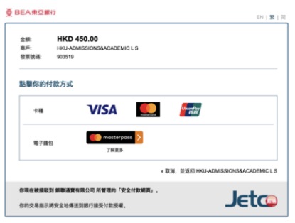 *如出现以下信息,则代表你的申请表格已经提交,但网上支付没有成功。