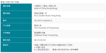 收件地址为:香港薄扶林道香港大学本部大楼地下MG14室入学事务处。请于信封注明「内地本科生入学计划」,亦请申请人妥善保管汇票等单据复本以作备用。
